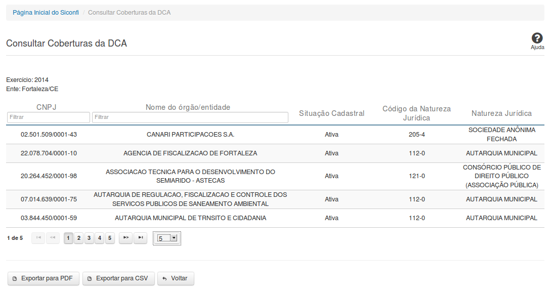 Lista de Órgãos - O resultado da consulta é uma lista de órgãos consolidados na cobertura. A lista é constituída pelos campos descritos a seguir: