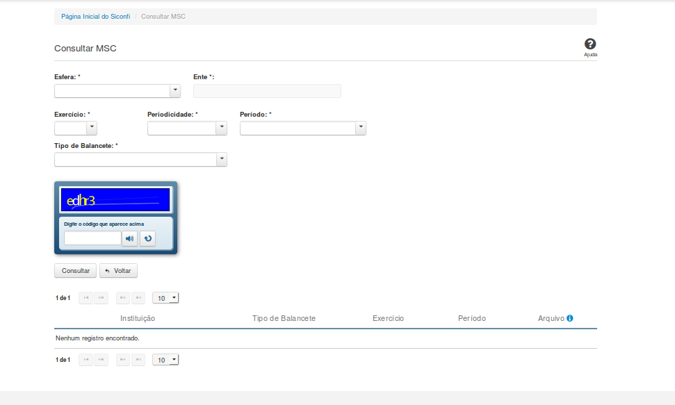 Essa tela permite que você obtenha uma lista de Matrizes de Saldos Contábeis cadastradas no sistema Siconfi.