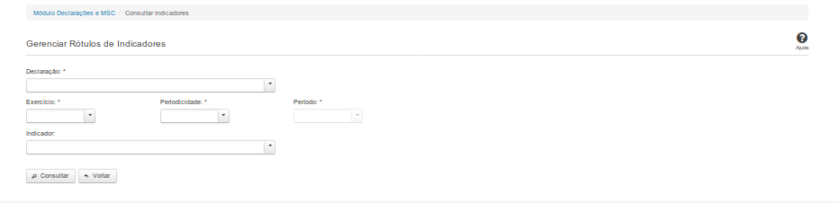 Indicador: Selecione o indicador. Campo opcional.