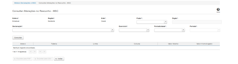 Exportar para CSV- Clique neste botão pra exportar o resultado da consulta para CSV.