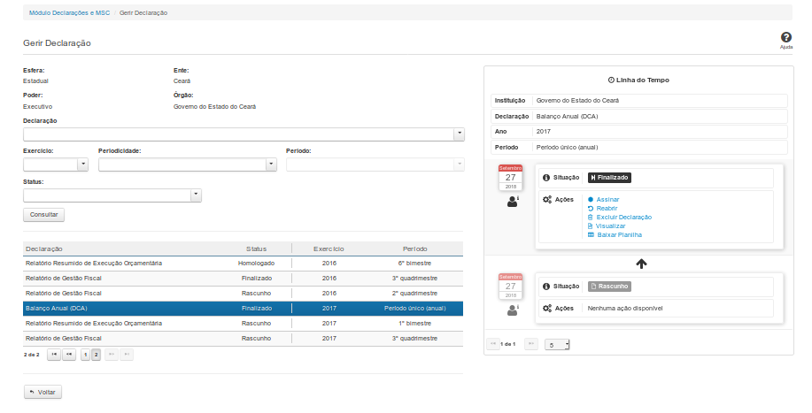 Na Linha do Tempo você pode gerenciar e acompanhar todo o ciclo de vida de uma declaração.