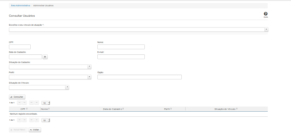 Situação do Vínculo: Selecione a situação do vínculo do usuário no sistema. Campo opcional.