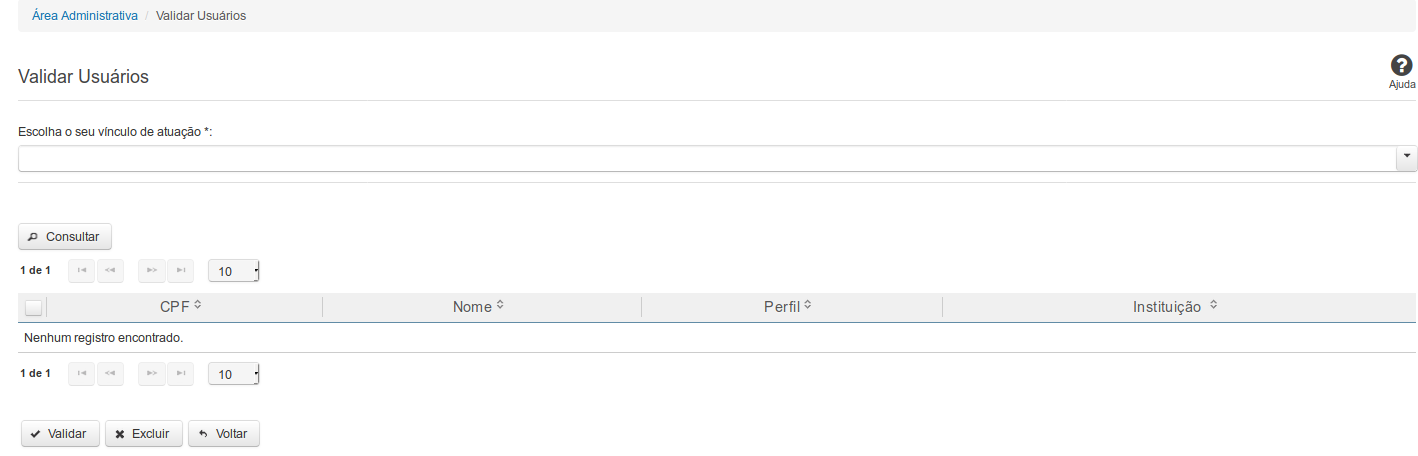 Essa tela permite que você valide um ou mais usuários cadastrados no sistema SICONFI.