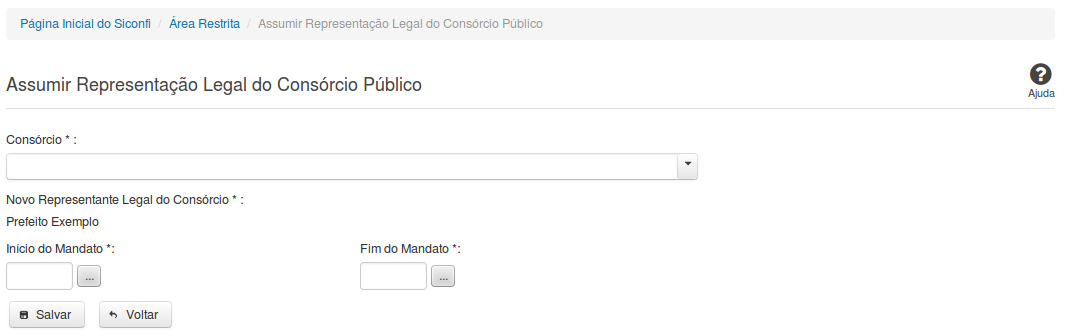 representação legal de um consórcio público cadastrado no sistema SICONFI.