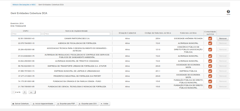 Remover - Clique nesse botão para remover um órgão/entidade da lista de cobertura.