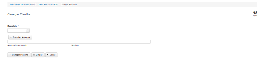 Essa tela permite que você carregue uma planilha contendo informações de Fontes de Recursos.