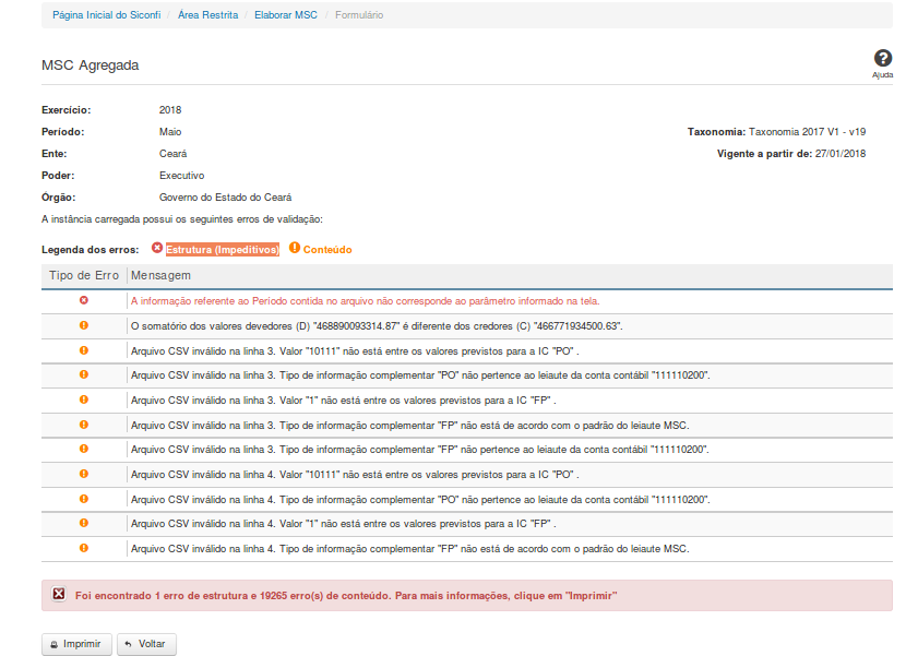 Imprimir - Clique nesse botão para imprimir a lista de erros de validação.