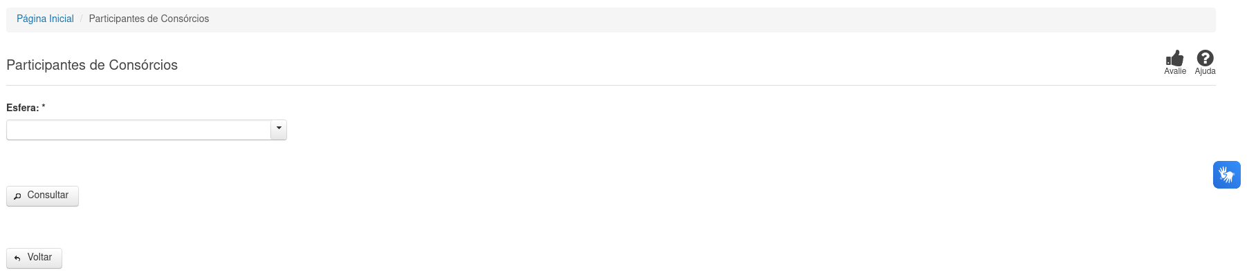 Essa tela permite que você obtenha uma lista de consórcios dos quais um determinado ente participa, bem como quais entes participam de um determinado consórcio.