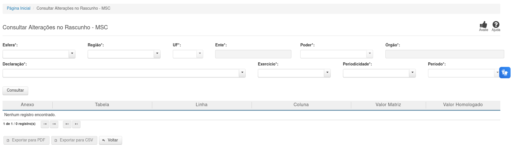 Essa tela permite que você obtenha as informações que foram alteradas pelo usuário após a carga da MSC referente aos campos selecionados.
