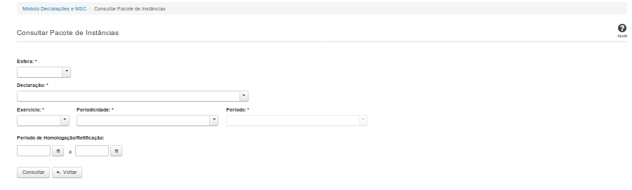 Período de Homologação/Retificação: Informe a data de início e fim do período em que as instâncias foram homologadas ou retificadas. Campo opcional.
