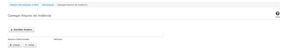 Essa tela permite que você carregue uma instância XBRL no sistema SICONFI.