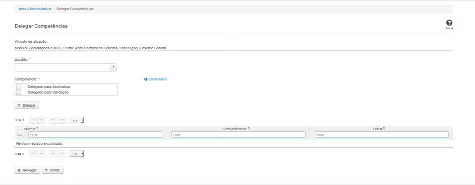Revogar - Clique nesse botão para revogar a delegação de competência para o usuário selecionado.