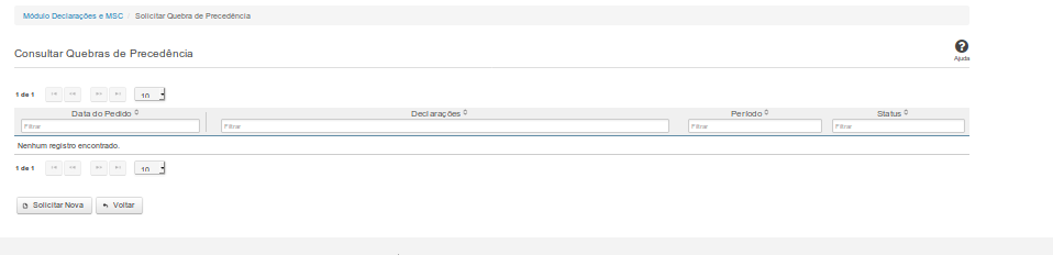 Solicitar Nova - Clique nesse botão para incluir um pedido de quebra de precedência.