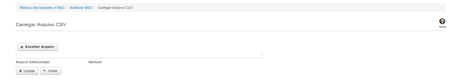 Essa tela permite que você carregue um arquivo CSV contendo as informações da Matriz de Saldos Contábeis (MSC).
