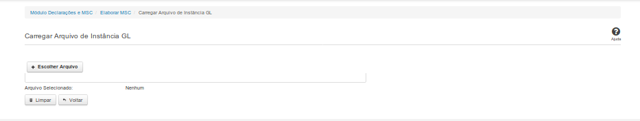 Essa tela permite que você carregue uma instância GL contendo as informações da Matriz de Saldos Contábeis (MSC).